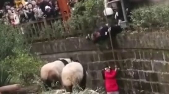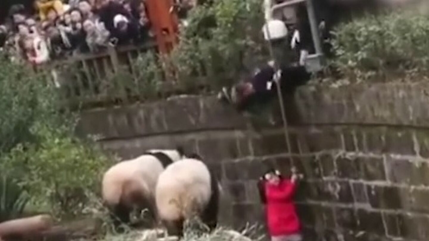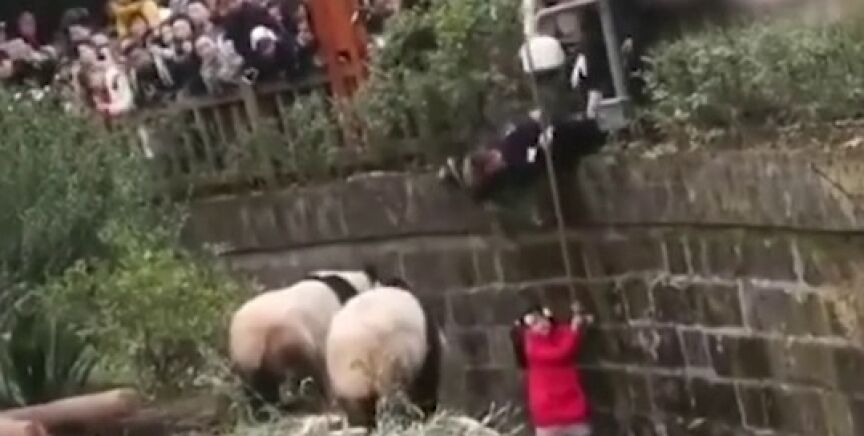 El agonizante rescate de una una niña que cayó a un foso de osos panda