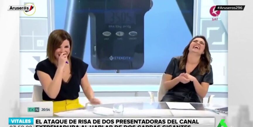 Alba Lancha y Noelia López presentan las noticias en el Canal de Extremadura cuando un ataque de risa les invade en pleno directo. Todo por culpa de la captura de una carpa de 35 kilos. En este vídeo puedes ver el viral momento de las presentadoras.