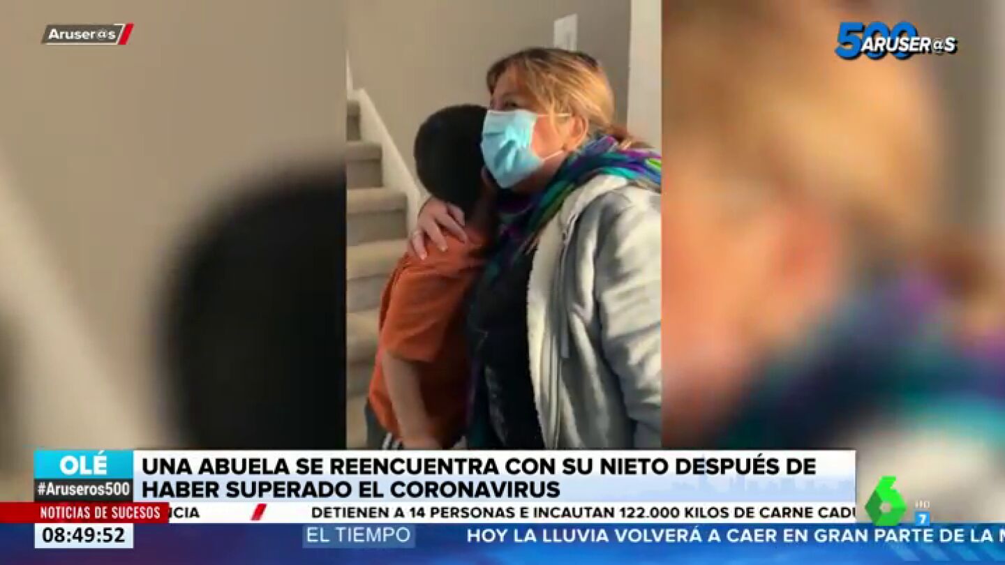 El pequeño, de seis años, se lanzó a los brazos de su abuela tras estar siete semanas sin verla por su positivo en coronavirus. En Aruser@s te mostramos las emotivas imágenes.