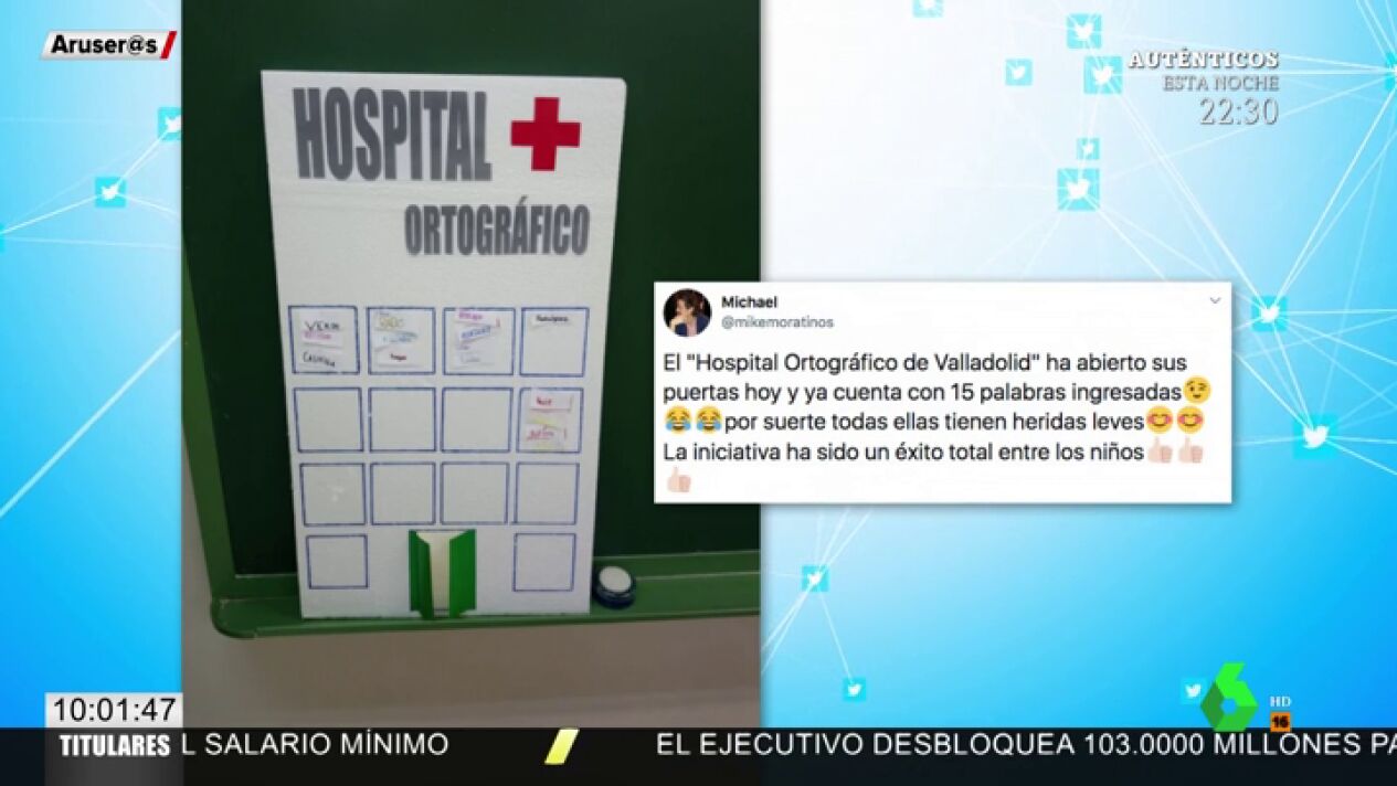 Dos días después, la docente inauguraba en su clase de primaria este centro hospitalario. "El 'Hospital Ortográfico de Valladolid' ha abierto sus puertas hoy y ya cuenta con 15 palabras ingresadas. Por suerte todas ellas tienen heridas leves", ha escrito @mikemoratinos en su perfil. Una iniciativa que ha tenido muy buena aceptación por parte de los alumnos. "Ha sido un éxito total", ha asegurado.