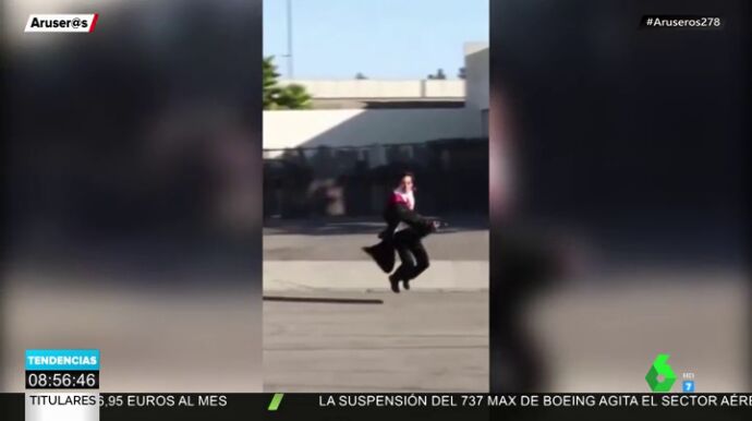 En el vídeo, de 18 segundos, aparece el 'influencer' con un atuendo propio del Colegio Hogwarts y volando sobre una escoba. Al final de la grabación devela el truco: es un efecto óptico hecho con un espejo, una escoba, una pierna falsa y un monopatín.