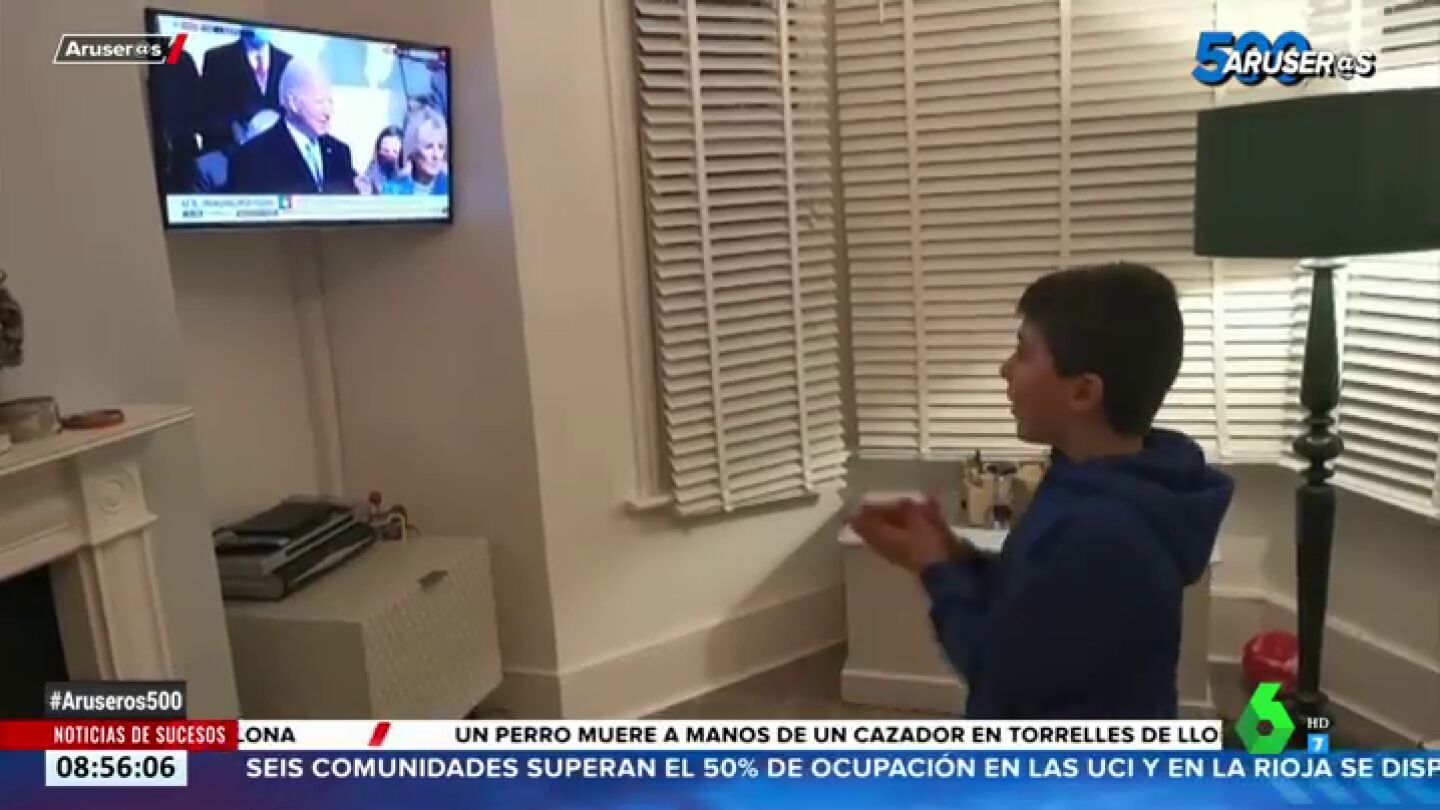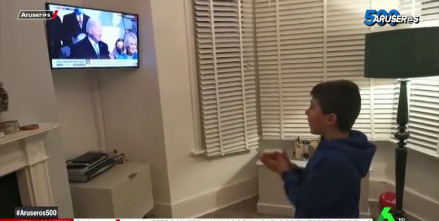 Es el caso de los dos hermanos que aparecen en este vídeo de Aruser@s. Ambos residen en Inglaterra junto a sus padres y vieron emocionados la toma de posesión del demócrata. Entre aplausos y gritos celebraron el momento en el que Biden juró el cargo.
