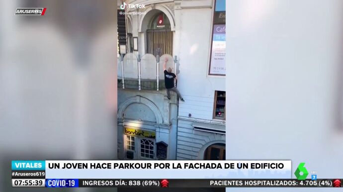 Un hombre ha sorprendido con su habilidad para escalar edificios en tan solo unos segundos haciendo parkour.