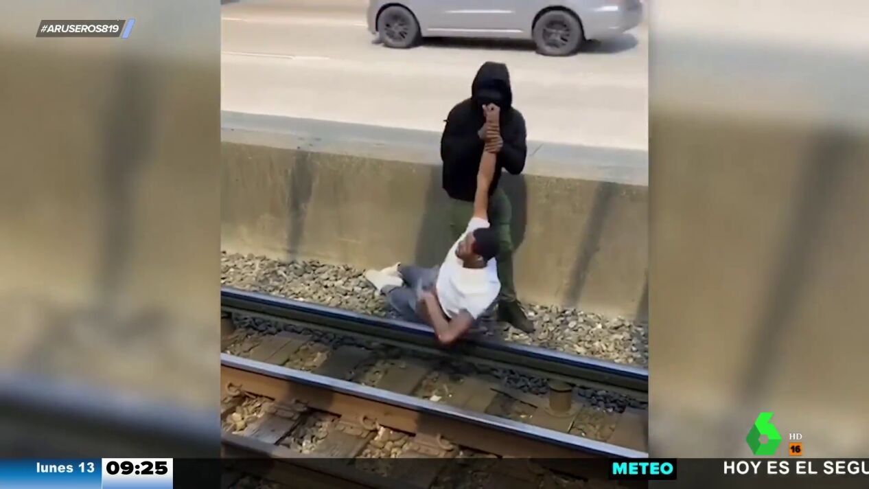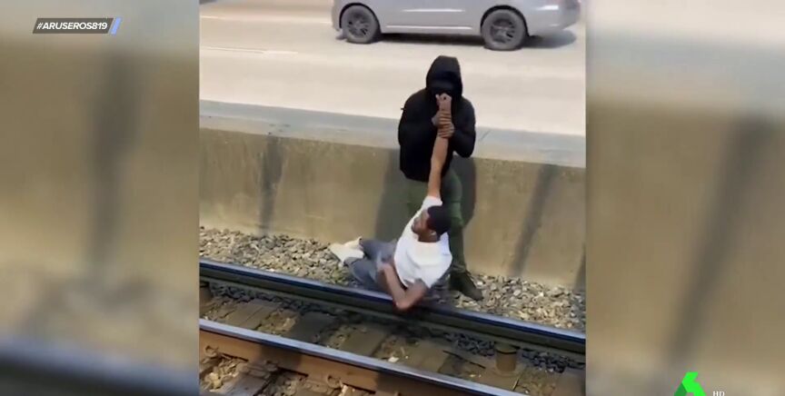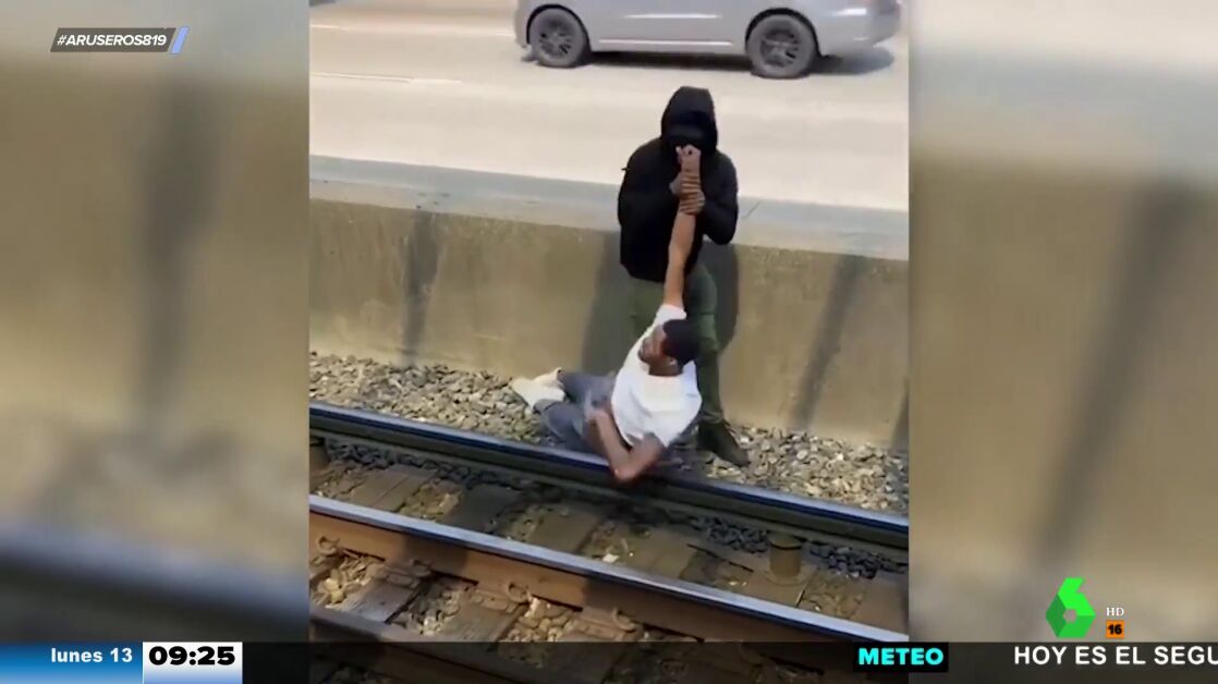 Aruser@s ha mostrado cómo un viandante salvó a otro que había caído a las vías del tren y estaba sufriendo convulsiones debido a las descargas eléctricas.