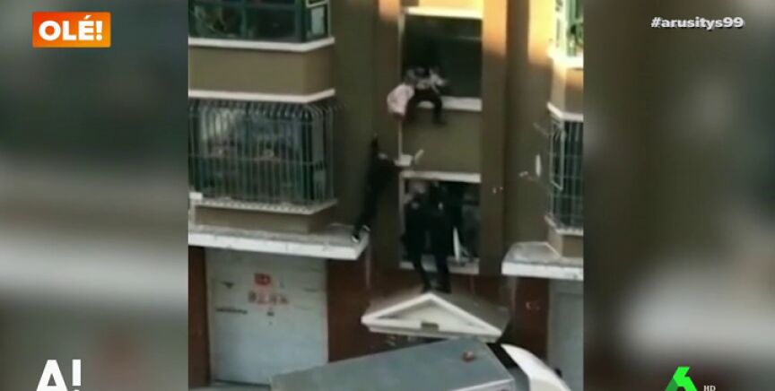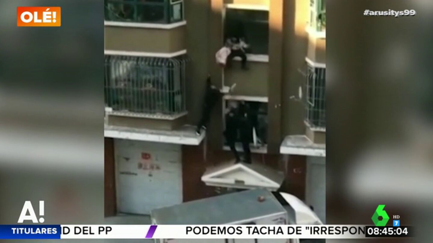 Afortunadamente, un hombre se encontraba en la zona para ayudar a los vecinos y pudo coger al vuelo al niño, evitando una posible tragedia.