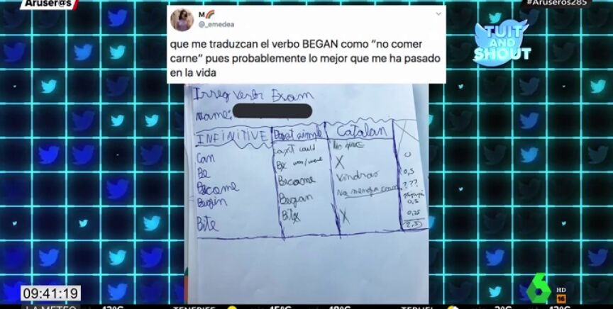 Una profesora ha compartido la respuesta de un alumno en un examen en el que se le pedía el pasado de los verbos irregulares en inglés y su traducción al catalán.