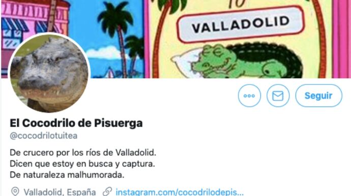 El presunto reptil que fue avistado en Valladolid ya tiene cuenta de Twitter. Se hace llamar El Cocodrilo de Pisuerga y lo que hace es comentar con humor las últimas novedades sobre su búsqueda. En este vídeo puedes ver sus ingeniosos tuits.