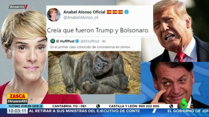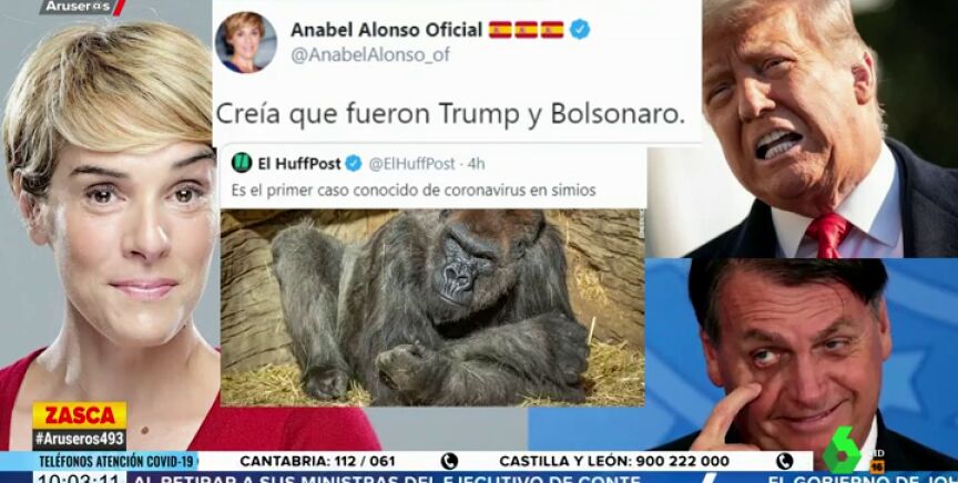 Anabel Alonso ha lanzado un comentado dardo a Donald Trump y Jair Bolsonaro tras reaccionar en Twitter a la noticia sobre el primer caso conocido de coronavirus en simios.