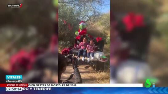 Los pequeños se encontraban posando cuando fueron sorprendidos por El Grinch vestido de Papá Noel, algo que no se tomaron demasiado bien.