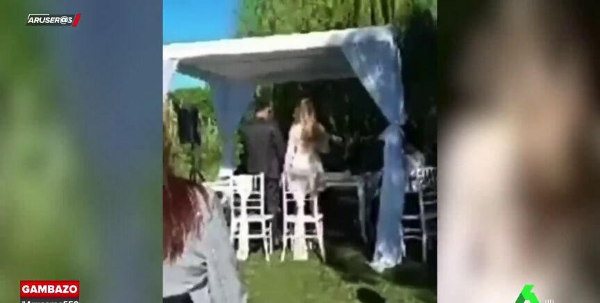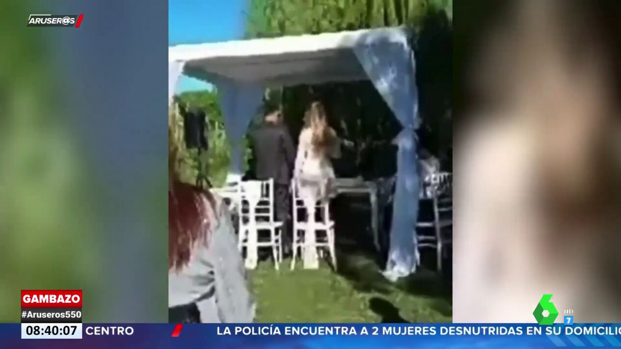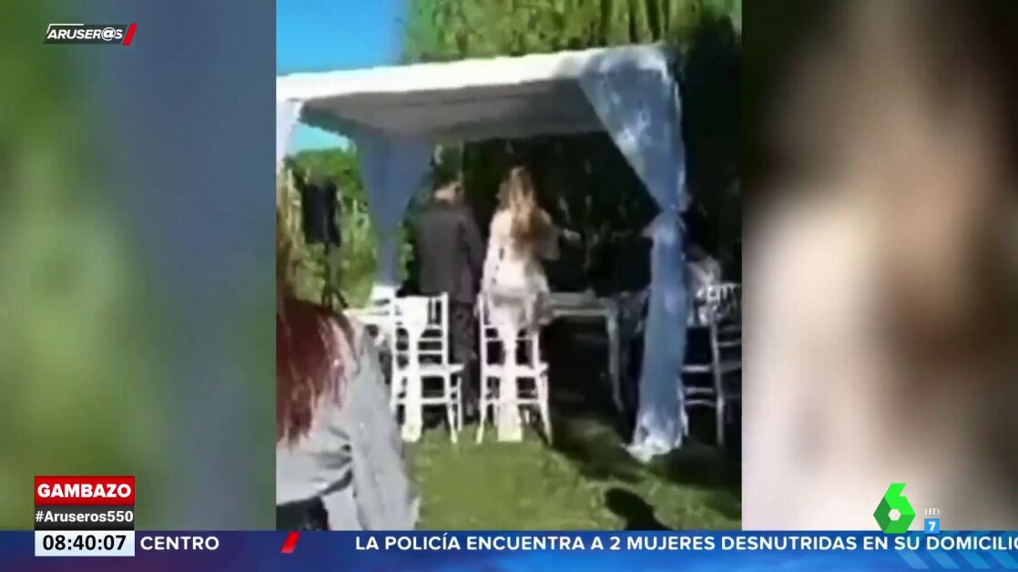 Una pareja vio interrumpida la ceremonia de su boda por un vendedor ambulante al grito de "mascarillas, huevos frescos...". El momento, en el vídeo superior.