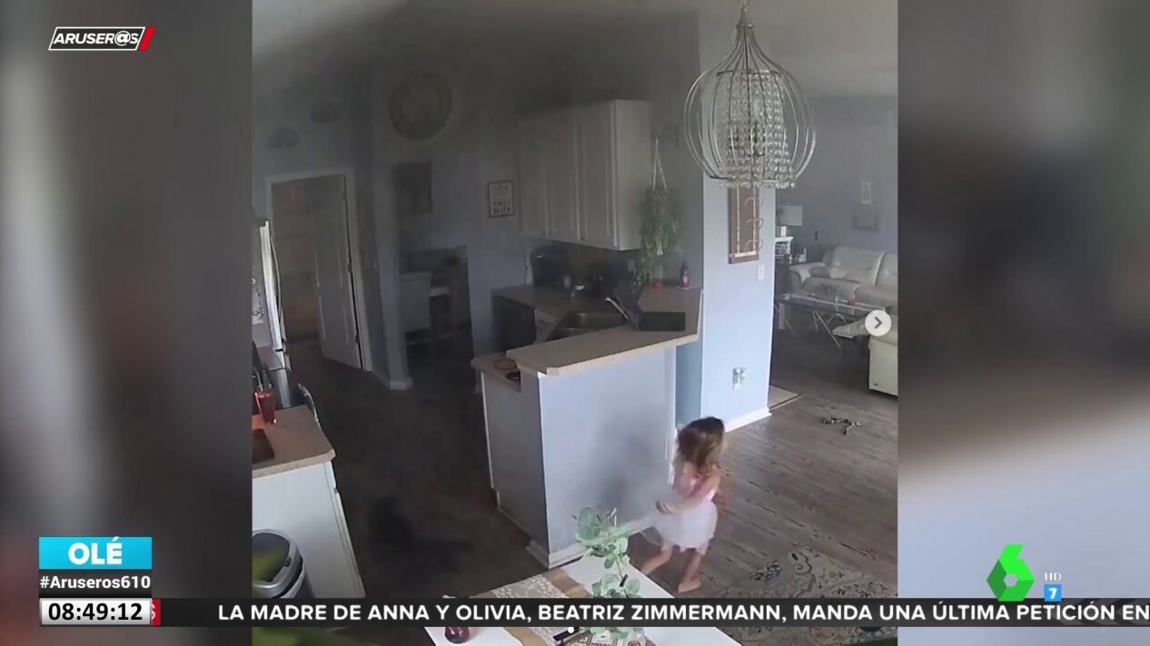 Como ha explicado su padre en redes sociales y se aprecia en este vídeo, la pequeña se percató de que un cortocircuito hizo arder la freidora y antes de que las llamas se expandieran por la cocina, corrió a advertir a sus progenitores.