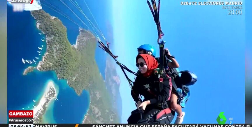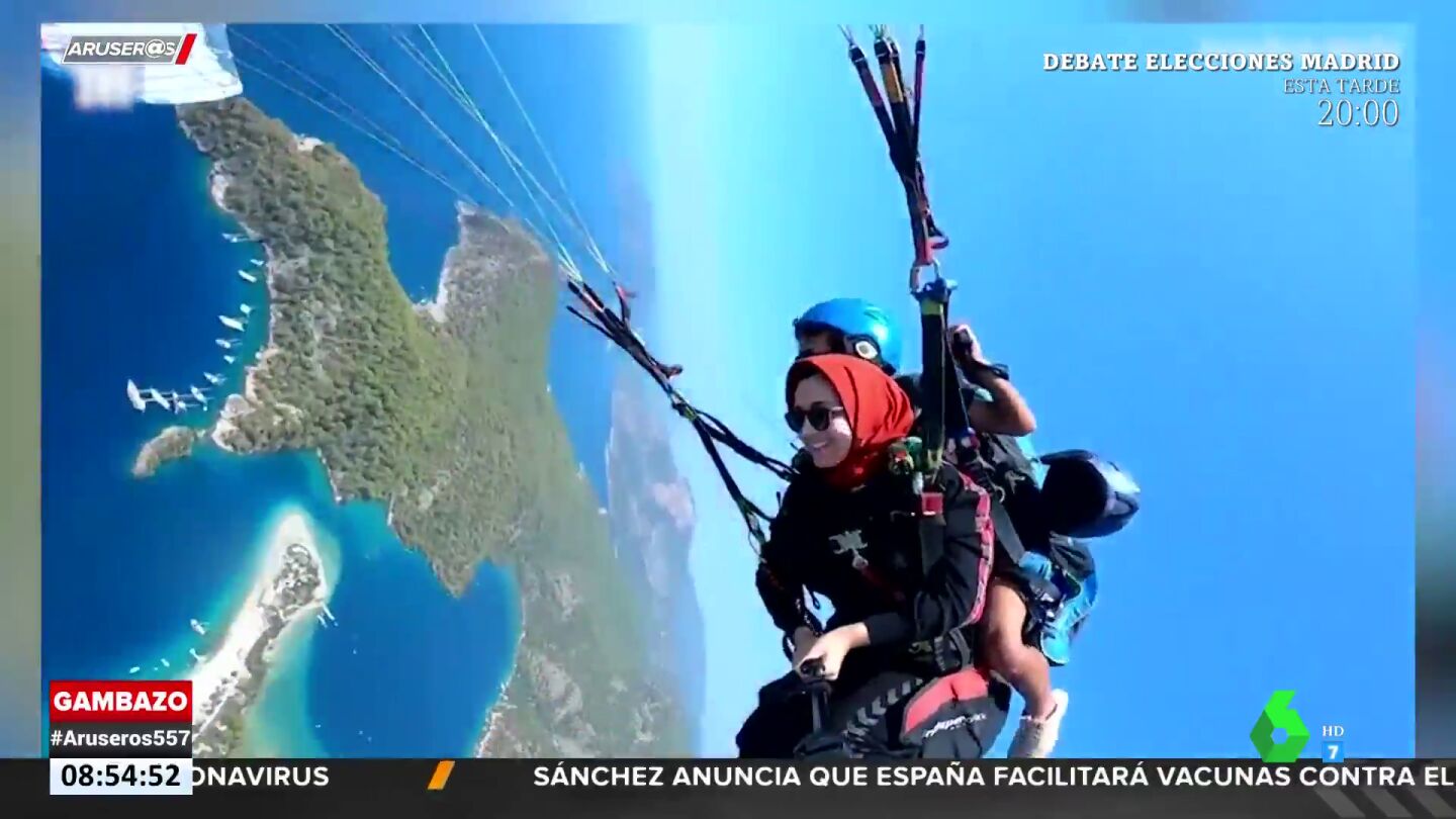 Esta joven se hizo viral por su sorprendente hazaña mientras practicaba vuelo en parapente. Lo vemos en este vídeo de Aruser@s.
