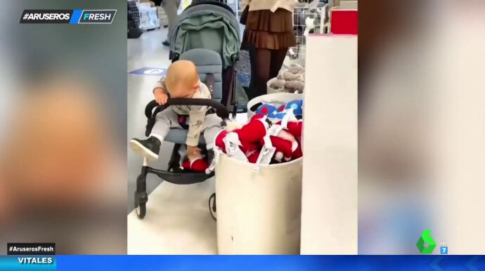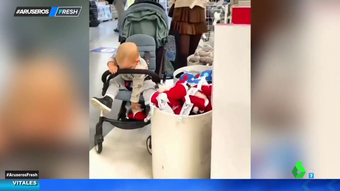 El protagonista de este vídeo viral mostrado en Aruser@s es un entusiasta de estos juguetes y no duda en hacerse con todos los que puede, aunque tenga que robar. En las imágenes puede verse cómo este bebé se encuentra con su madre en una tienda. Sentado, y sin que su progenitora se percate, consigue guardar dos peluches en la parte inferior de su carrito.