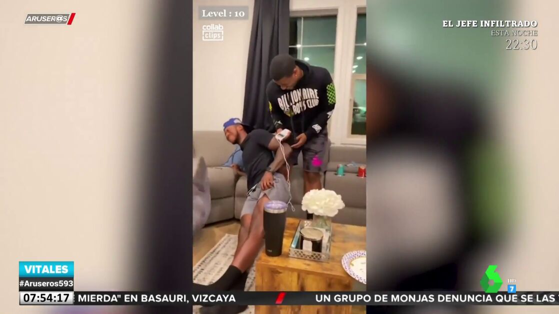 Ambos, como se aprecia en el vídeo superior, no aguantan el dolor, se retuercen y llegan a caer al suelo.