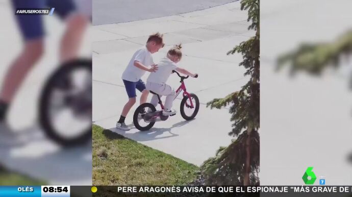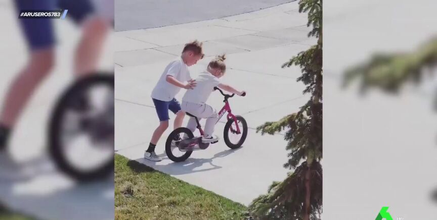 En el vídeo que acompaña a la noticia puede verse cómo un niño, a pesar de su corta edad, enseña a su hermana a montar en bicicleta. Su madre, que les vigilaba desde la ventana, grabó estos vídeos que no han tardado en viralizarse en redes sociales.