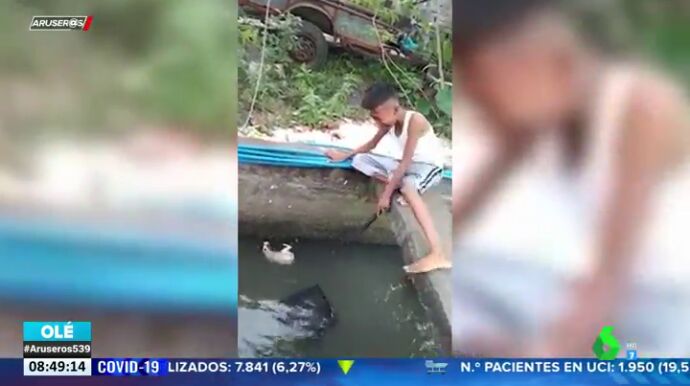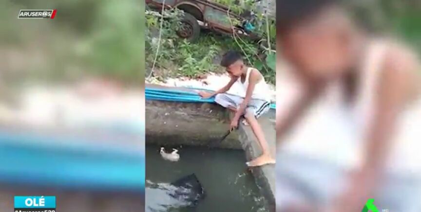 Uno de ellos no se lo pensó dos veces e intentó por todos los medios salvar la vida del animal. Sin embargo, al ver que no lograba conseguirlo empezó a llorar desconsoladamente y a patalear. Finalmente, logró sacarlo del agua cogiéndolo con las piernas.