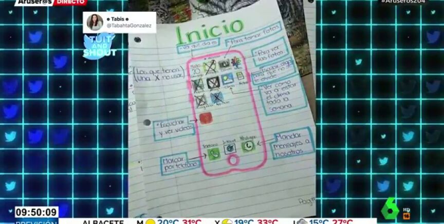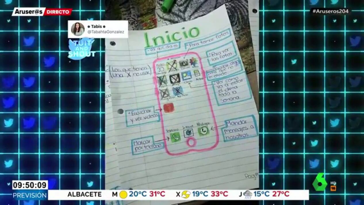 Una nieta dibuja a su abuela una guía para que aprenda a utilizar su móvil