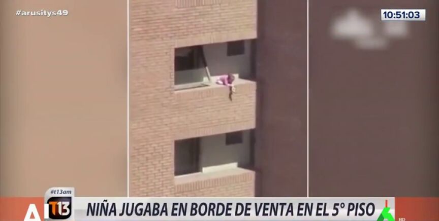 Una niña jugando al borde del balcón de un quinto piso: la incidencia de una madre que podía haber terminado en tragedia