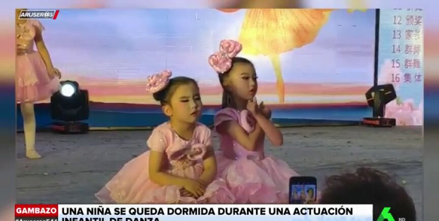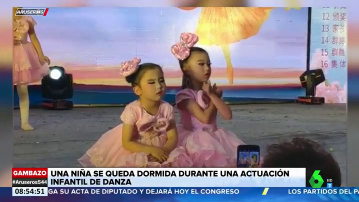 Una niña se duerme en plena actuación durante un festival de baile
