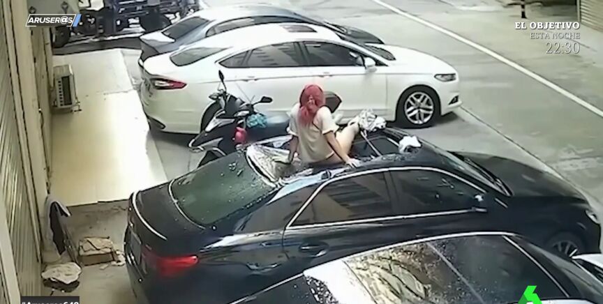 Una mujer cae sobre el techo de un coche mientras tiene relaciones sexuales en el balcón de su casa. El vídeo alucina a Alfonso Arús.