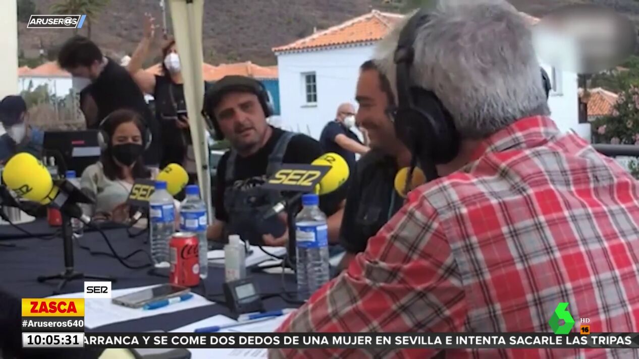 El equipo de Aruser@s señala como uno de los mejores zascas el que hace un voluntario de La Palma, en directo, hablando de la gente que se hace fotos con el volcán.
