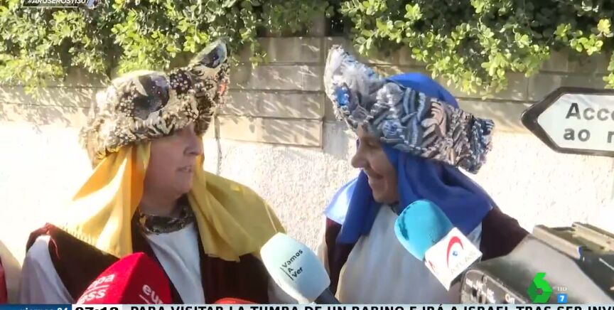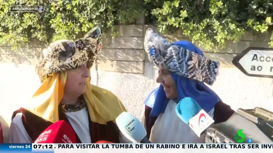 Los ayudantes de los Reyes Magos han aprovechado que el rey emérito estaba en España para hacerle una visita navideña anticipada, al menos intentarlo. Hasta las puertas de Pedro Campos en Sanxenxo han llegado estas tres pajes reales, que han hablando con la prensa.