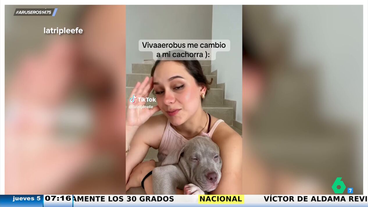 Irte de viaje con tu mascota puede llegar a ser bastante problemático, sobre todo, si se viaja en transporte público. La joven (@latripleefe en TikTok) que protagoniza este vídeo viral del que se hace eco Aruser@s puede dar buena cuenta de ello.