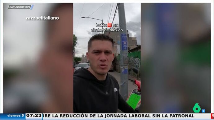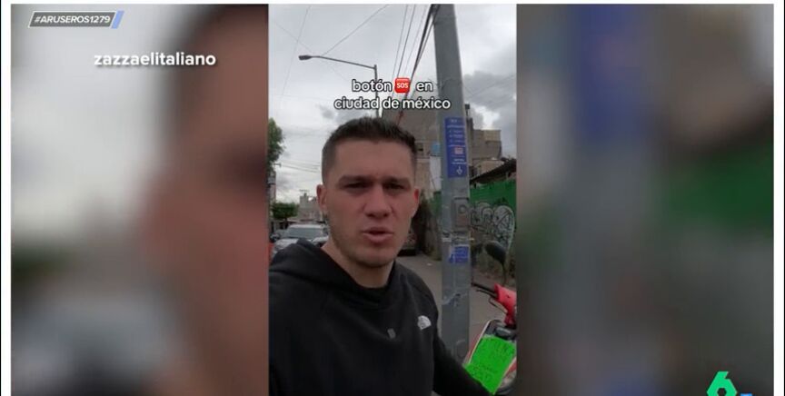 'Zazza, el italiano', youtuber y copresentador del programa de 'Apatrullando' ,muestra en su último vídeo, el 'botón de auxilio' instalado en las calles de México. El popular creador de contenido, que visita algunos de los barrios más conflictivos de todos los países, enseña como en México, con intención de mejorar la seguridad de sus calles, han implementado un 'botón de auxilio' donde lo aprietas, y gracias a las cámaras de seguridad colocadas en altura, llamas a la policía.