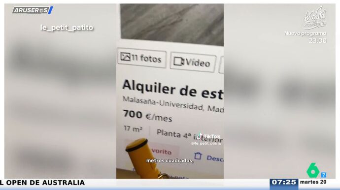 Aruser@s vuelve a señalar otro 'zulo' de alquiler que se ha hecho viral en redes: una vivienda interior sin ascensor, de apenas 17 metros cuadrados y por 700 euros al mes, que ha provocado incredulidad entre los colaboradores del programa.