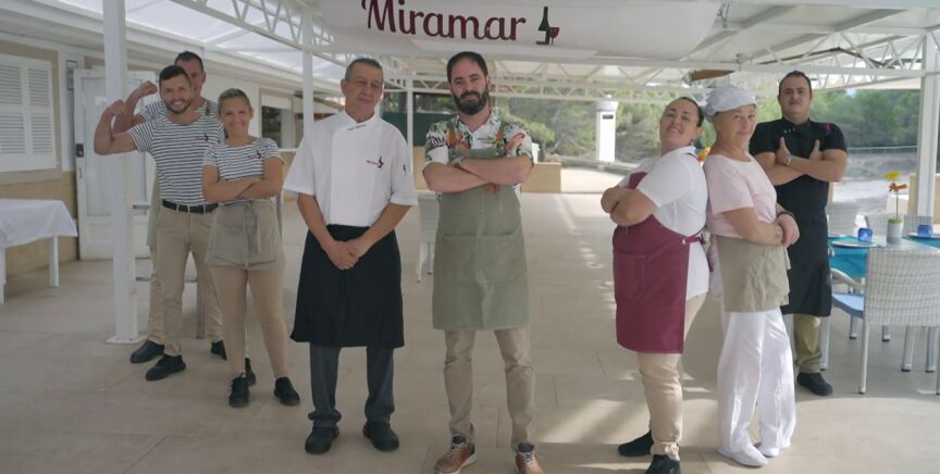 "Él dice que los cántabros van de frente y que no se callan las cosas. Pues que hable. Que hable, ¿no?", dice Alberto Chicote antes de presentar al segundo concursante de este programa de Batalla de restaurantes que se desarrolla en Menorca. Él es Diego Merino, tiene 40 años y es el gerente y propietario del restaurante Miramar.