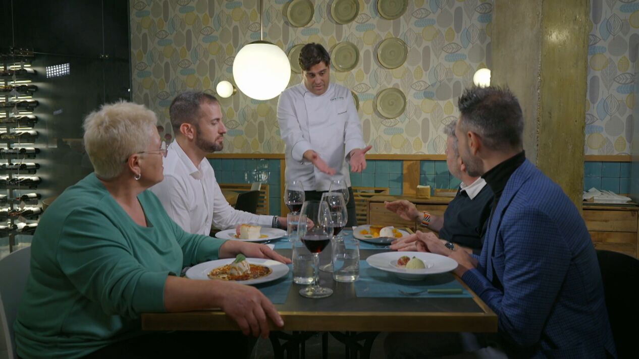 Una vez terminados los último platos, piden la cuenta al camarero. El popular chef pregunta al resto de concursantes por el precio de la comida. Sole, de Olrey, responde 220, Ismael, de El Albero, 180 y David, de Novus Orza, 240. Alberto les mira y revela el precio: "197'75".