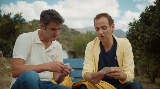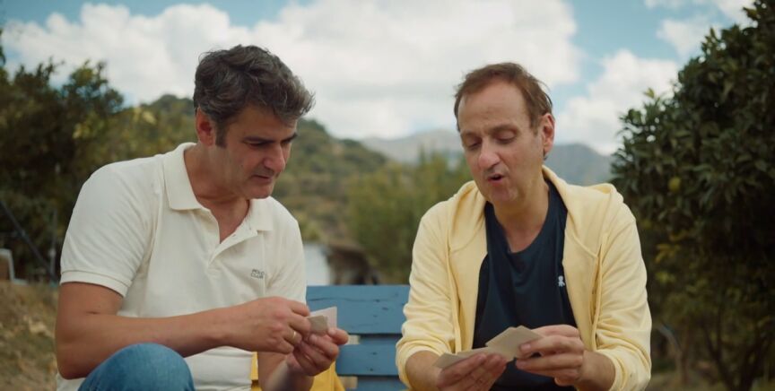 Pero aquí no acaba el tiempo de recreo de ambos, que han vuelto a contactar con sus niños interiores. "Te he traído unos cromos y me gustaría jugar a un juego que me enseñaron en el hospital. Un hombre que tenía unos 92 o 93 años creó estas cartas. Me decía 'coge 5 cartas'. Las barajo", le va explicando a Jesús Janeiro.