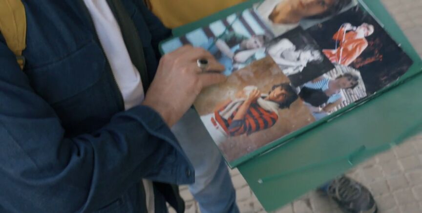 "Como esta nunca la pude llevar, voy a llevar esta. Tampoco le decía a nadie que tenía los discos de Miguel Bosé en casa, porque era ídolo de chicas y había miedo", confiesa. "La carpeta que nunca pude llevar", afirma entre risas.