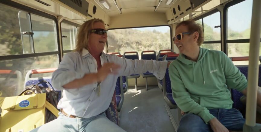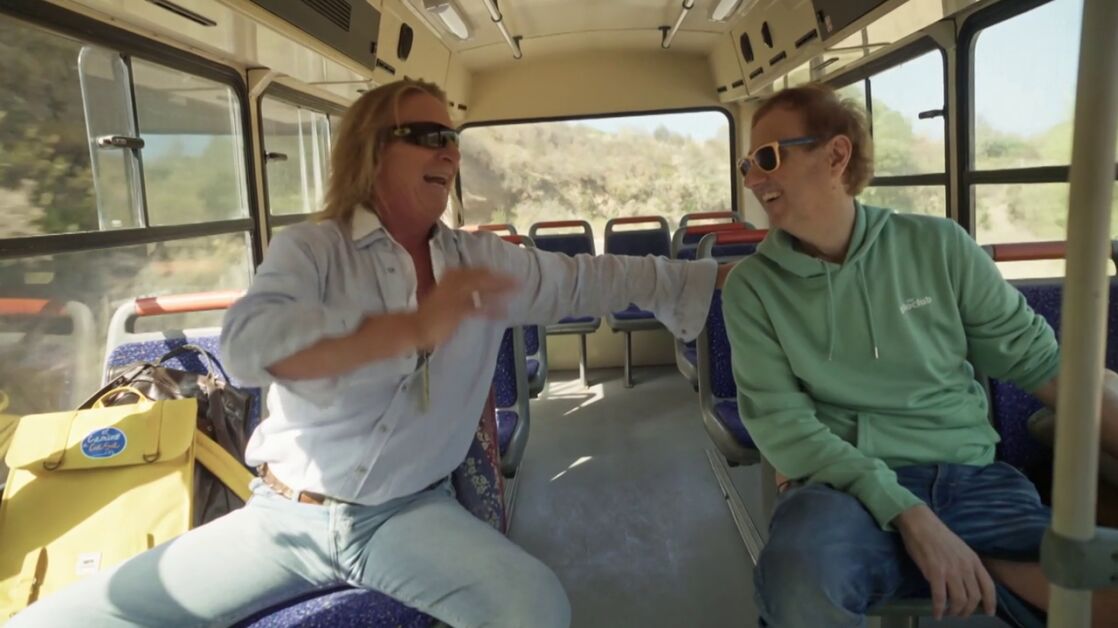 Montados en el autobús que les aleja delcolegio en el que estudiaba (o mejor dicho, gamberreaba) Pocholo de niño, Albert Espinosa y su invitado de hoy de El camino a casa prosiguen su camino, que en este trayecto les llevará hasta la playa.