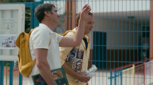 "Mi clase era esa, esas cuatro ventanas y mi pupitre estaba en la ventana aquella. Yo me asomaba por allí y le decía a mi hermano: ¡cabezón!", recuerda entre risas. Ahora, ya en el patio, tanto 'Espi' como 'Jesuli' se comen su bocadillo, de jamón y de Nocilla respectivamente. "Joder, cuánto tiempo hacía que no me comía yo un bocata de Nocilla", exclama al darle un bocado.