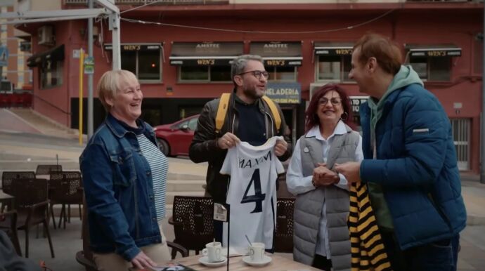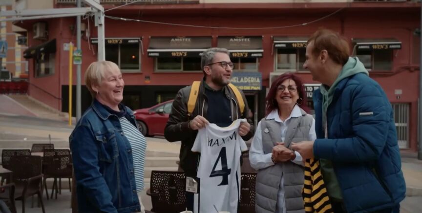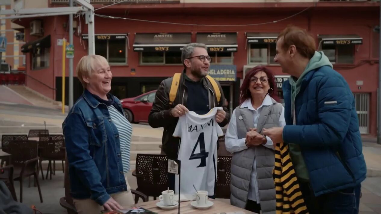 Precisamente, Albert Espinosa regala a Máximo Huerta una camiseta del club blanco con el mismo número y su nombre escrito detrás. Ante el emotivo detalle, el escritor decide ponérsela: "En honor a mi padre, que moriría por esto".