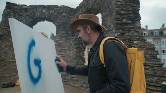 Luis Tosar vuelve a sus orígenes de grafitero: así realiza un grafiti sobre la muralla de Lugo