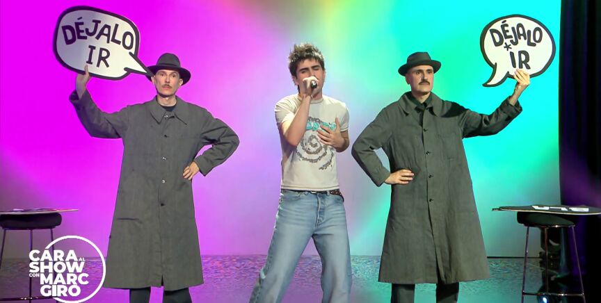 El artista ha estado acompañado sobre el escenario por Hidrogenesse, formado por Carlos Ballesteros y Genís Segarra, poniendo su sello inconfundible a una puesta en escena que ha destacado por su estética inspirada en el mundo del cómic, con viñetas y elementos gráficos. "Qué listo Martín, que te ha producido Hidrogenesse", bromea Marc Giró entre risas durante la presentación.
