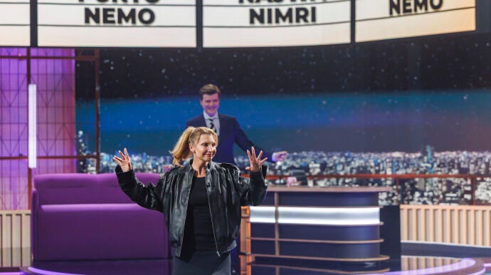 La Giró's Boy Band recibe como se merece a la siguiente invitada de la noche. Najwa Nimri aterriza en Cara al Show, el programa de laSexta capitaneado por Marc Giró, irrumpiendo en el plató apenas unos minutos después de que lo abandone Pedro Almodóvar. Relevo de altura y de carácter. El espacio vuelve esta noche al prime time tras firmar el pasado martes el mejor estreno de la cadena en los últimos seis años.