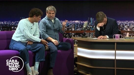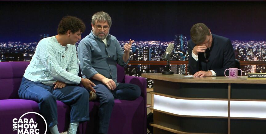 Jordi Évole y Eduardo Casanova visitan a Marc Giró en el plató de Cara al Show para hablar de Sidosa, el documental producido por el periodista y protagonizado por el actor en el que Casanova cuenta su historia tras descubrir que tenía VIH.