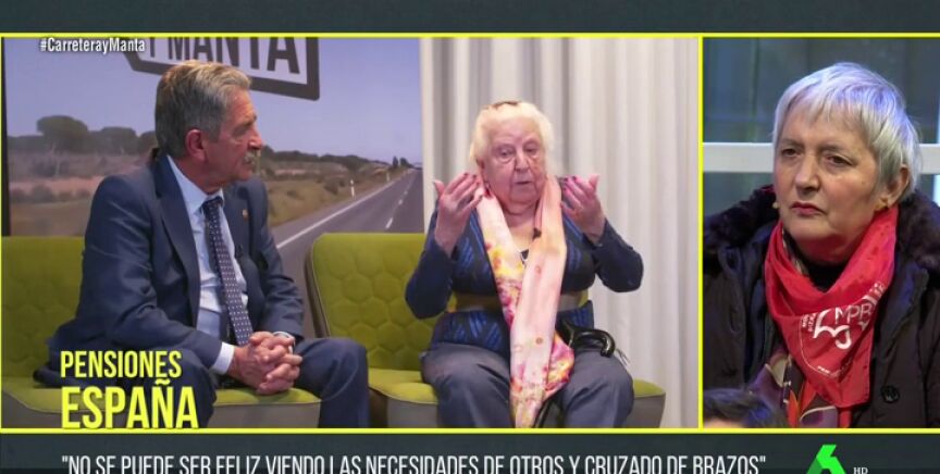 Paquita Martín tiene 93 años y sigue con su lucha por unas pensiones dignas. En este vídeo de Carretera y manta pide a los jóvenes salir a la calle para luchar por sus derechos.
