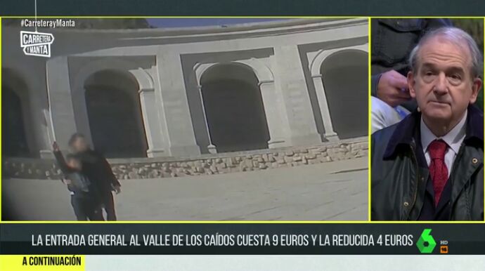Carretera y Manta se desplaza hasta el Valle de los Caídos. El equipo se encuentra con colas de coches para acceder al mausoleo, muchos llevan banderas de España. La entrada al Valle vale nueve euros los adultos, y cuatro euros la tarifa reducida a niños, estudiantes, parados y pensionistas.