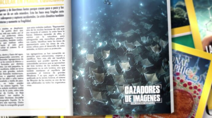 Un mes después de su aventura en Baja California Sur, de haber nadado con lobos marinos, un tiburón ballena y delfines, Silvia Abril y Gotzon Mantuliz se reencuentran en Madrid. Allí, el aventurero le enseña la imagen final: la fotografía de la migración de las mobulas que ha sido publicada en National Geographic.