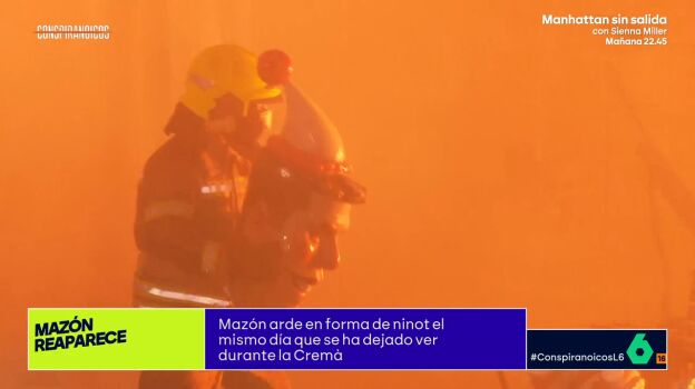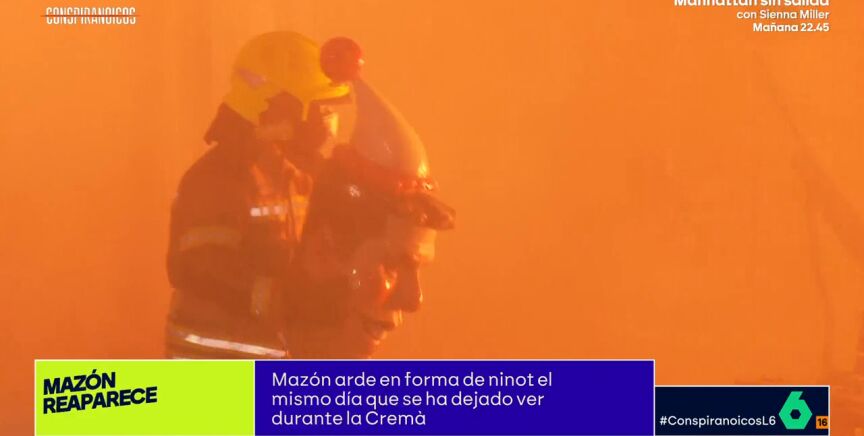 Las cámaras de Conspiranoicos han captado un momento representativo de la situación en Valencia. Durante la Cremà, un bombero ha quitado la cabeza de un ninot de Mazón y la ha arrojado al fuego.