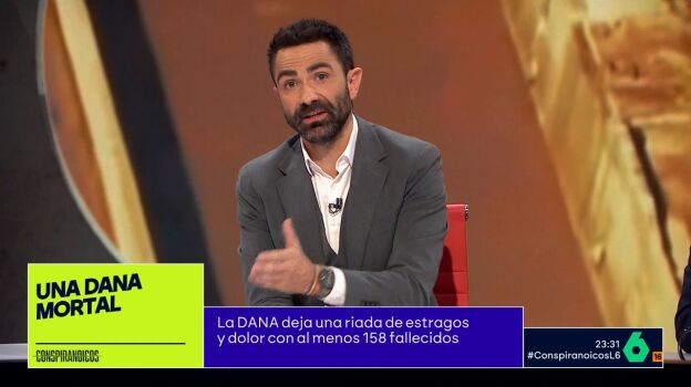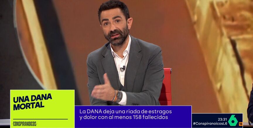 El presentador de 'Conspiranoicos', Jokin Castellón, ha revelado durante el programa los problemas que han sufrido los periodistas de laSexta para llegar a la zona cero en Valencia y a los municipios más afectados por la DANA. "Casi no hay cobertura telefónica", ha comentado Castellón.