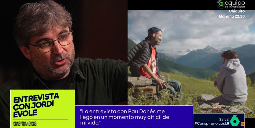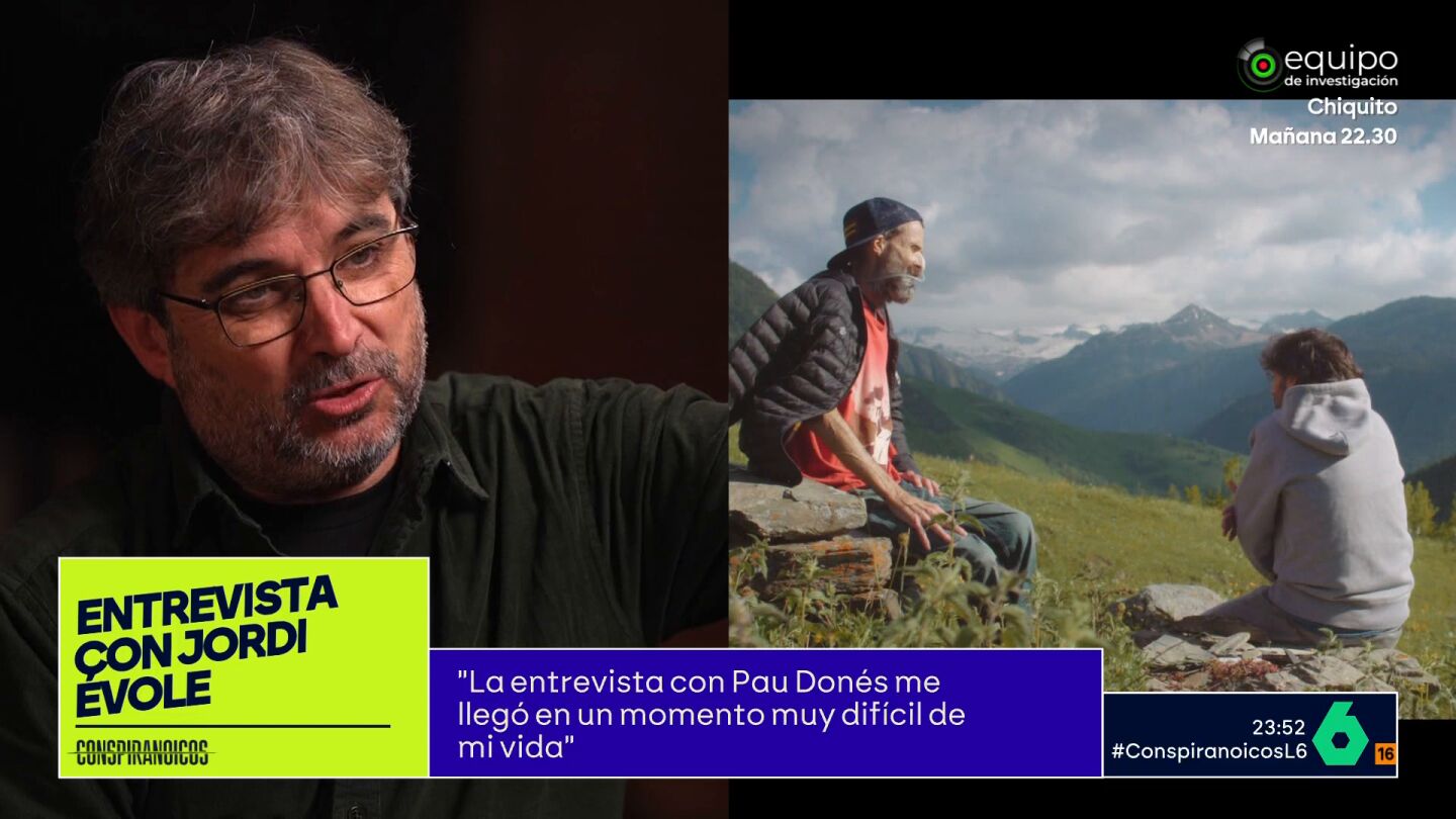 El presentador de Conspiranoicos no duda en preguntar a Évole si él, al igual que Fernández, ha mostrado sus vulnerabilidades. "A veces sí", responde el periodista, "y se enfada gente de mi entorno". Évole comparte, por ejemplo, que la entrevista que realizó a Pau Donés, le llegó en un momento "muy difícil" de su vida y que le cambió la manera de ver muchas cosas.