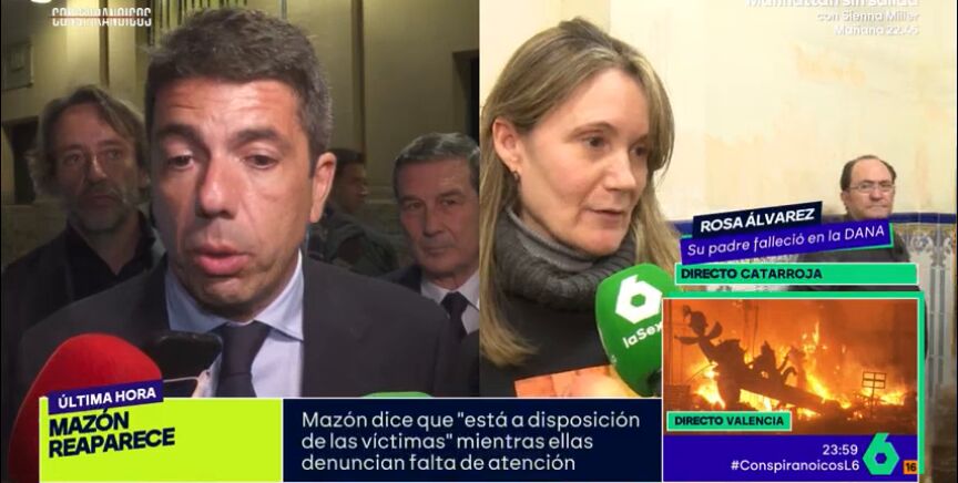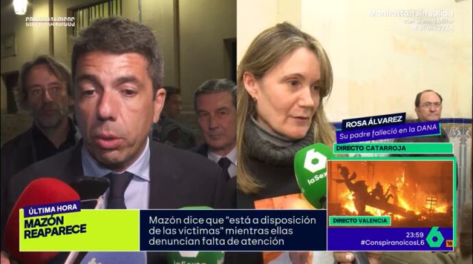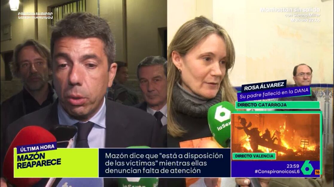 Para terminar, Rosa ha asegurado que Mazón "es mala persona": "No se ha puesto en contacto con nadie de nosotros, ni con una familia. Huye de todos nosotros, nos manda a la Policía para que no accedamos, cambian de coches... Que deje de insultar y que deje de decir mentiras".