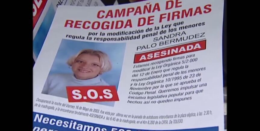 En mayo de 2003 Getafe se tiñó de luto: el cadáver de Sandra Palo, de 22 años, fue encontrado en una carretera de Madrid. Había sido asesinada, violada y atropellada por cuatro jóvenes, tres de ellos menores de edad. El crimen conmocionó a la sociedad que pedía endurecer las penas a menores.