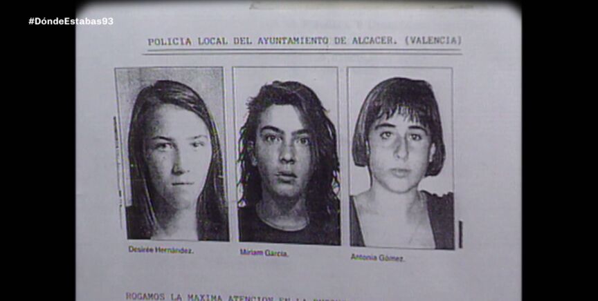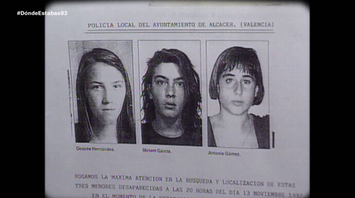 1993 empieza con una terrible noticia: el descubrimiento de los cuerpos sin vida de Desireé, Toñi y Miriam. Las menores, que habían desaparecido dos meses antes, fueron secuestradas y asesinadas. Dónde estabas entonces recuerda el crimen de Alcàsser.