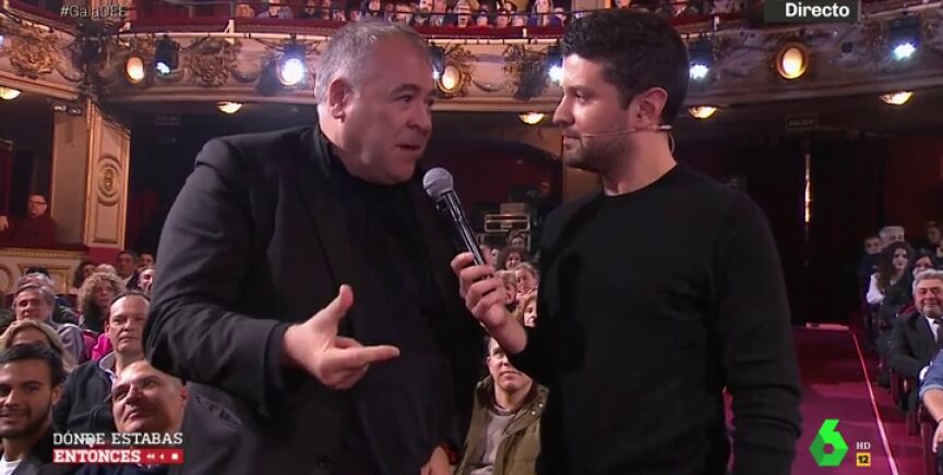 Antonio García Ferrreras cuenta en la gala en directo de DEE que no hizo el servicio militar obligatorio. "¿No ha servido a España?", se pregunta Maldonado. "Lo intento hacer pero de otra manera. Tengo un concepto del patriotismo diferente", comenta el director y presentador de Al Rojo Vivo.